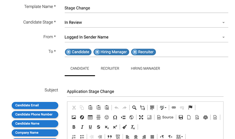 In order to improve the automation of the communication with your candidates and hiring team you will be able to use and update email templates.