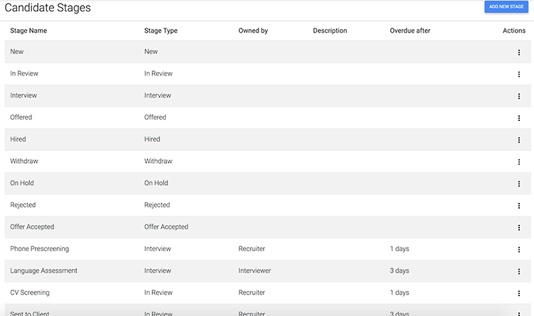 Optimize your recruitment process by dividing it into application stages. Follow the ready to use pipeline or customize it to suit your hiring requirements. Track candidates across stages. Add, modify or delete stages to match your recruitment process. Trigger automated emails and text messages to engage candidates and set SLA per stage.