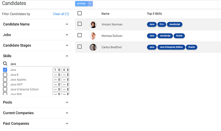 Enjoy one of the most advanced search and filter functionalities on the market of the ATS. Imaging to filter candidates based on their rank in specific skills.